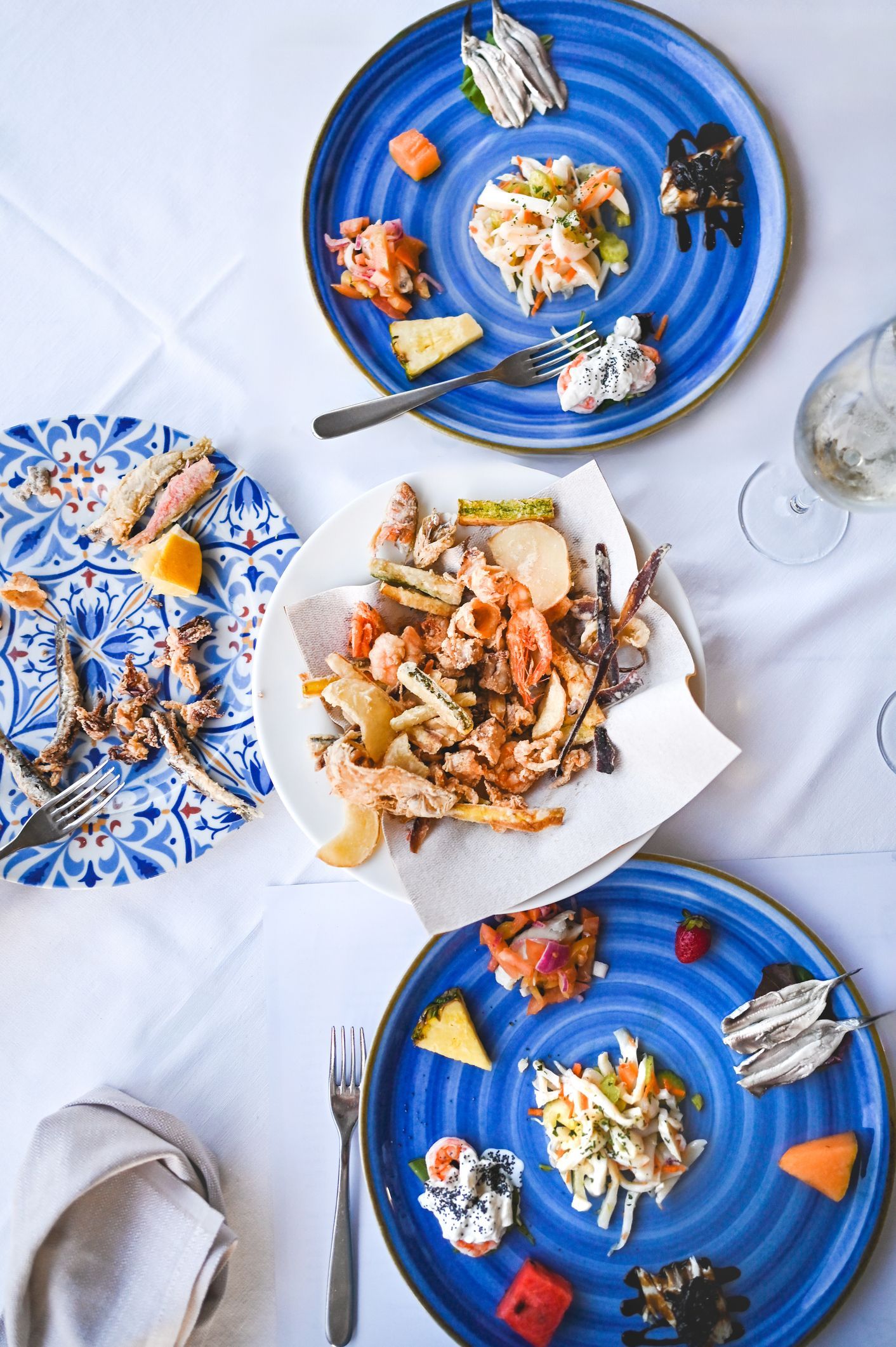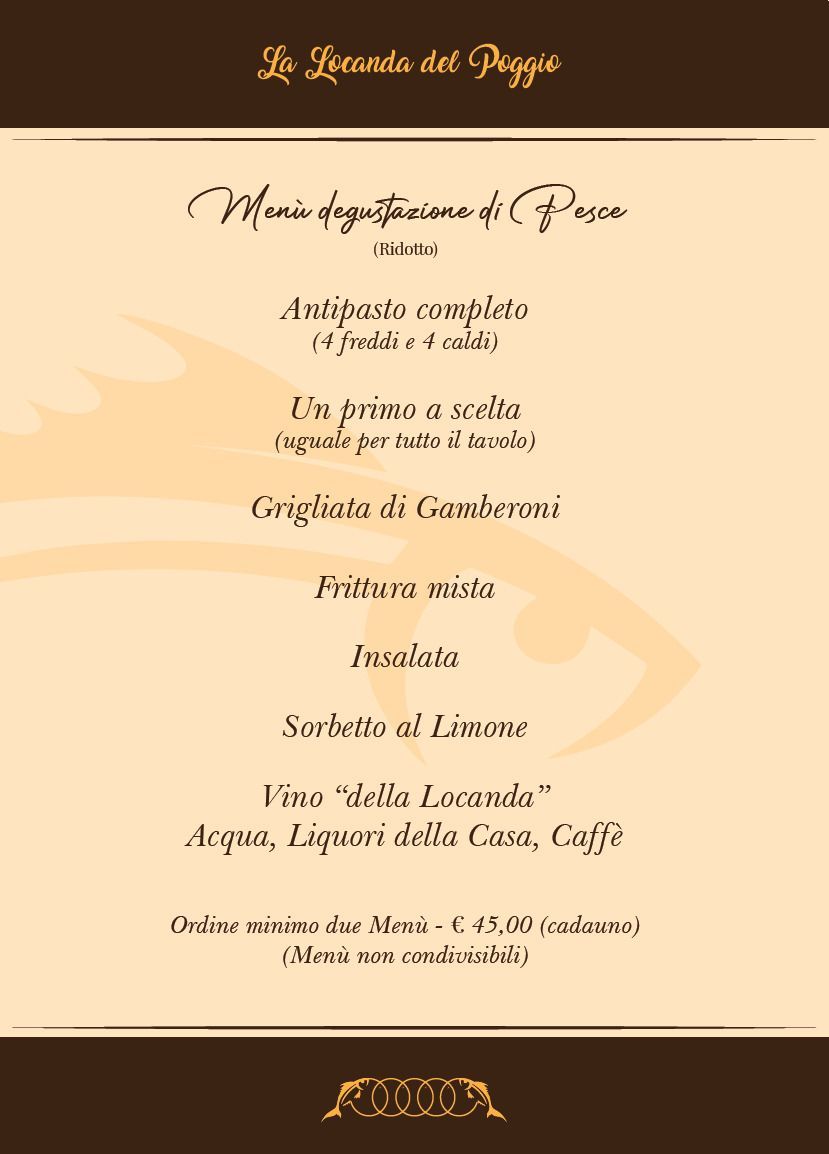 Potete scegliere liberamente se ordinare alla carta i piatti che più vi ispirano, oppure se optare per lo sfizioso menù degustazione, che si compone di 4 portate fredde e di 4 portate calde, tutte a base di pesce.